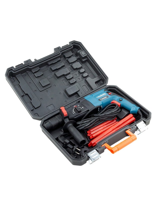 Tmakota 2601C dönər çəkicini təqdim edirik! Bu güclü və etibarlı alət müxtəlif tikinti işlərində, xüsusən də beton, daş və metalda tez və asanlıqla deliklər qazmaq lazımdırsa, əvəzsiz köməkçiniz olacaq. Güc: 800 W. Fırlanma sürəti: 900 rpm-ə qədər. Maksimum qazma diametri: 26 mm-ə qədər. Gərginlik: 220 V, 50-60 Hz. Ölçüləri: 45 x 30 x 12 sm. Çəkisi: 4,5 kq. Beton, daş və metal daxil olmaqla müxtəlif materiallar üçün uyğundur. Daxili təsir funksiyası. Paketə daxildir: Tmakota 2601C fırlanan çəkic, əlavə tutacaq, saxlama və daşıma qutusu.