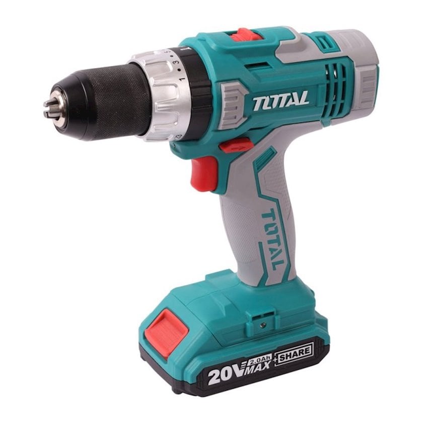Ударная дрель-шуруповерт TOTAL TIDLI2003 снабжена быстрозажимым металлическим патроном, что обеспечивает быструю и удобную замену оснастки. Для ослабления и выкручивания крепежа предусмотрена функция реверса. Встроенная подсветка позволяет работать в темное время суток или при плохом освещении. Модель функционирует от литий-ионного аккумулятора, который отличается легкостью и мощностью, отсутствием саморазряда и эффекта памяти.