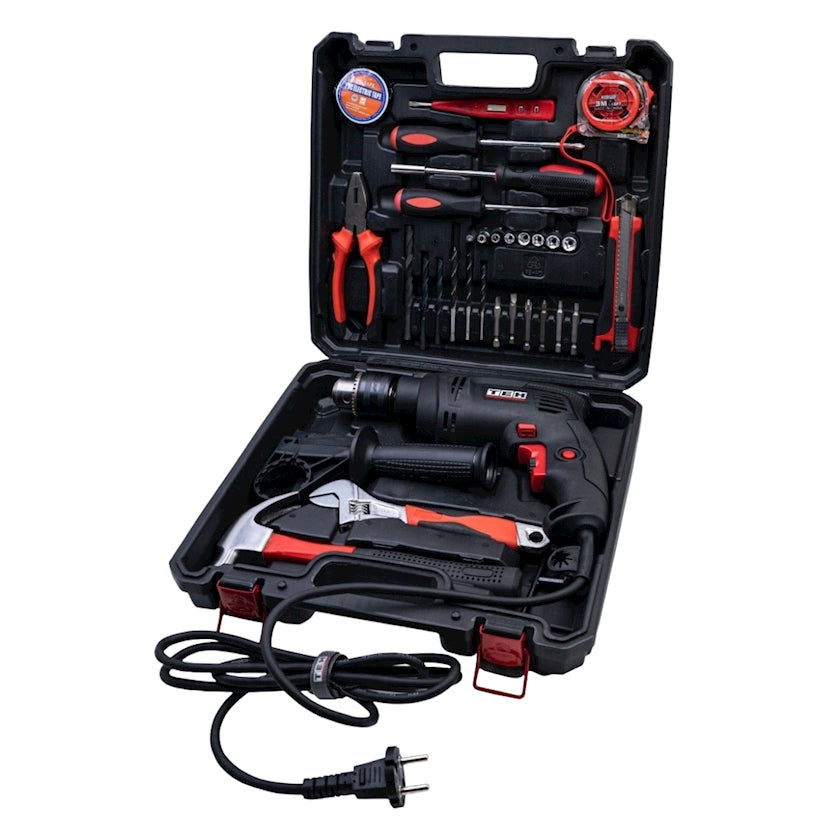 Набор инструментов для дома TEH TD1306X с ударной дрелью незаменим при проведении ремонтных и отделочных работ. Переключатель на корпусе электродрели позволяет использовать режим сверление при работе с деревом и металлом, режим перфоратора- с кирпичом, плиткой и бетоном.